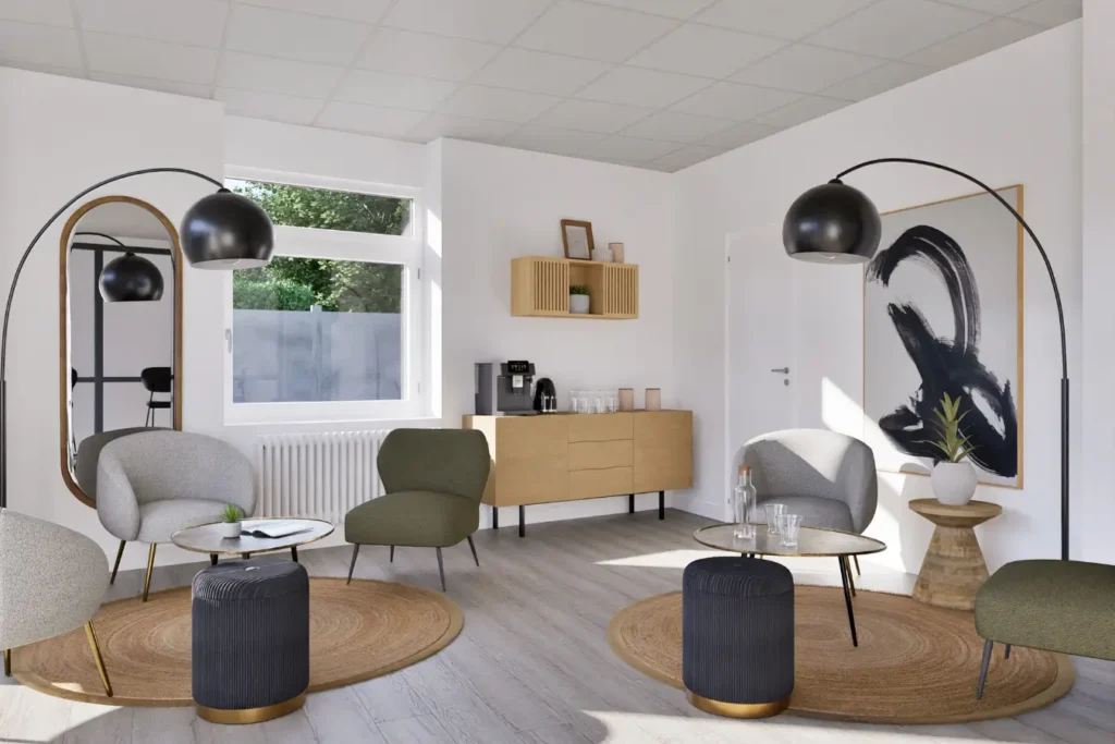 Pour éviter les zones d’ombre et les contrastes trop marqués, il est conseillé d’installer un éclairage uniforme via des panneaux LED répartis régulièrement au plafond, complétés par un éclairage indirect ou des lampadaires. Le choix de luminaires avec une bonne diffusion de la lumière est aussi essentiel pour uniformiser l’éclairage dans l’espace.